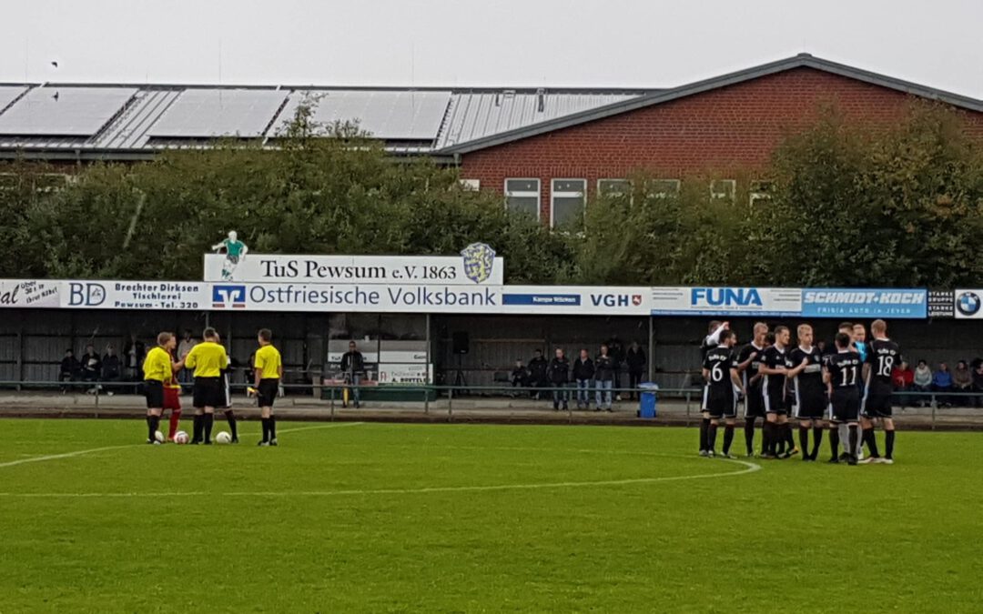 Nach 4 Siegen in Folge setzte es heute beim TuS Pewsum eine unnötige 1:2-Niederlage. Dabei lief zunächst alles nach Plan. Gegen tief stehende Gastgeber gelang in der 13.Minute nach einem Eckball von Kevin Lüpkes das 1:0 per Kopf durch Lenard Buscher.